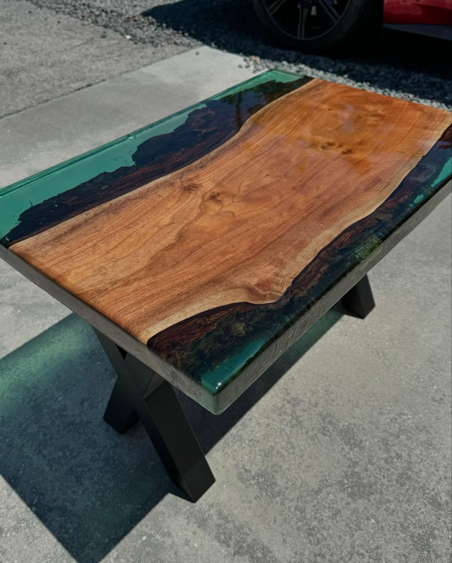 Bradford Pear Table With Transparent Green Epoxy