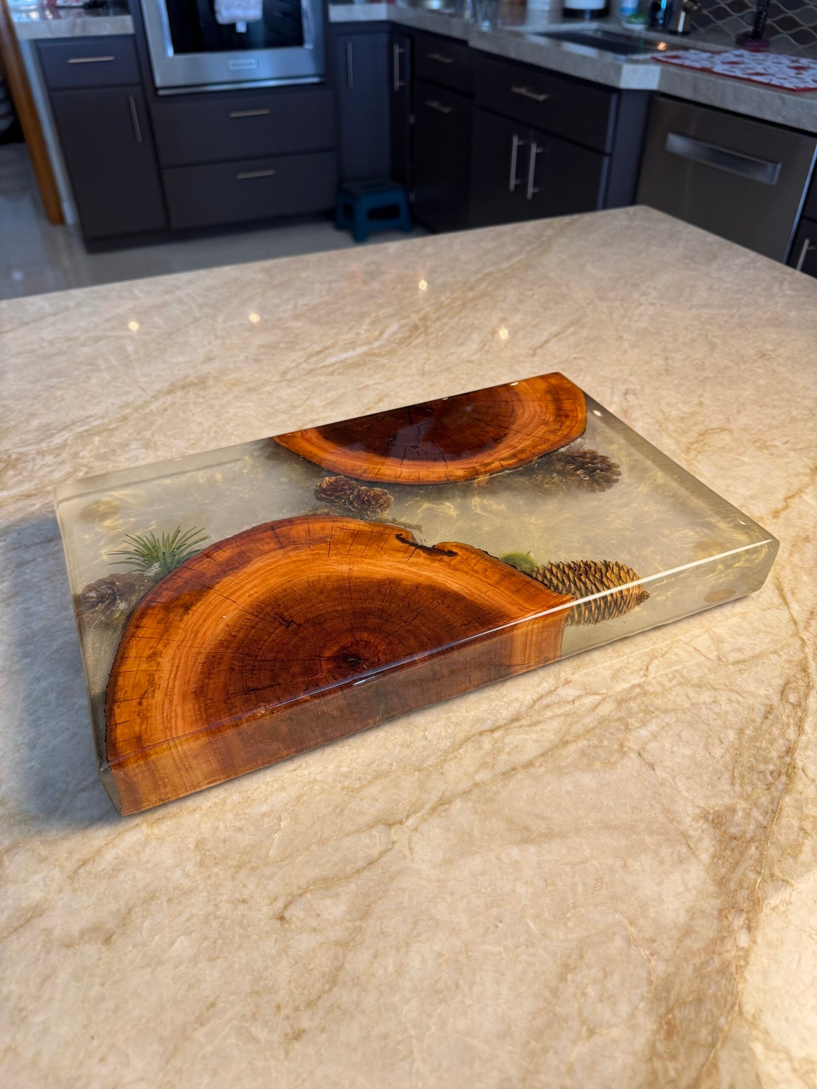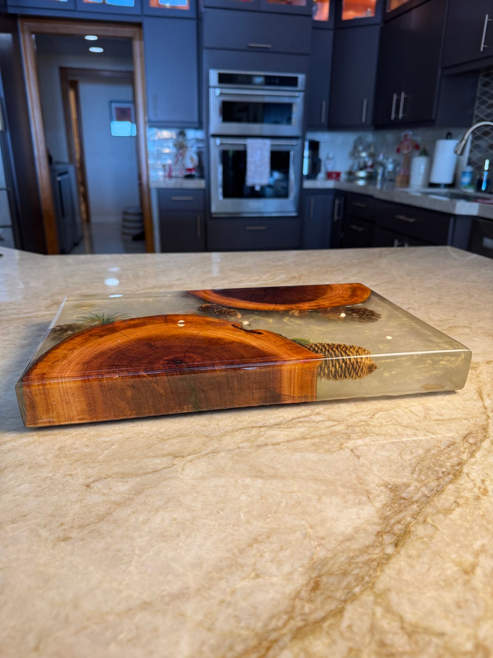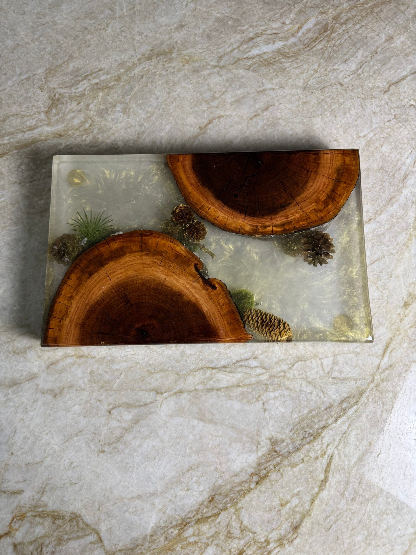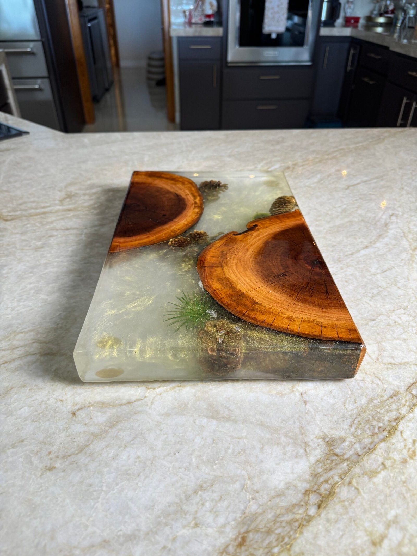 White Irridescent Epoxy Board with Pinecones & Air Plants